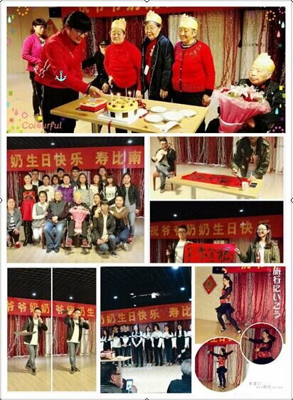 当天是几位老人的生日,同学们为老人精心准备了庆生节目。有来自15本科和14本科的小合唱,有体现我院专业素养的配乐书法,有深情的诗朗诵和吉他弹唱,有道靖老师激情澎湃的拉丁舞表演,当然还有深受老人们喜爱的京剧表演,节目可谓是丰富多彩,精彩绝伦。伴随着同学们热情的表演,整个敬老院里萦绕着爱的暖流,场面温馨感人。欢乐的时光总是过的特别快,活动也在大家的欢声笑语中接近了尾声。