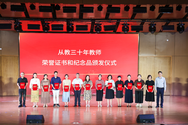大会为教龄满30年教师颁发了荣誉证书和纪念品,19位新教师进行入职宣誓。与会老师共同重温了教育家精神。