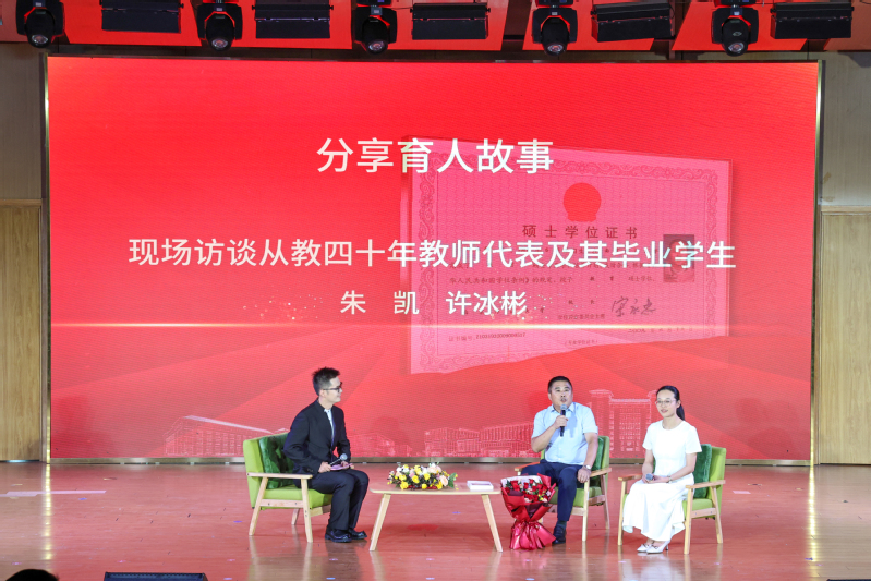 大会以“百十师韵,芳华献党”问渔讲坛形式展现我校“大先生”们乐教爱生的故事,讲述了江恒源、郇华民、宋健明、汤炳书的初心故事,分享了“贾雯老师与教育强国共成长”的育人故事,访谈了从教四十年教师代表朱凯和他的学生许冰彬老师的师生情谊故事。与会人员共同观看了祝福视频《40个春秋,40载耕耘》、合唱《你是那道光》《老师,你我共同的名称》《老师,您好》、舞蹈《一路生花》、诗文朗诵《教育的追寻》。