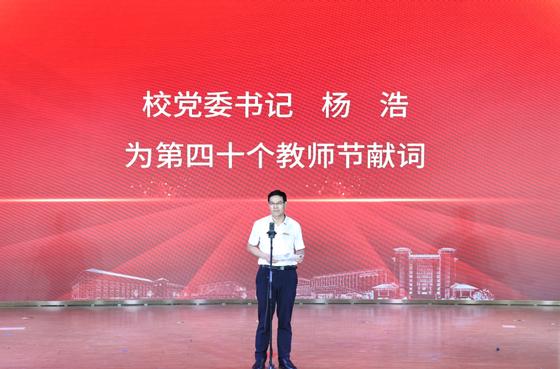 金秋九月,桃李芬芳。9月10日下午,我校在绍曾楼音乐厅举行第四十个教师节庆祝表彰大会暨“百十师韵,芳华献党”问渔讲坛活动。校党委书记杨浩出席并讲话,校长姚荣斌等在家校领导出席会议。受表彰教师、新入职教师以及全体中层干部、各学院、部门教职工代表和学生代表欢聚一堂,表彰先进、共话心声。