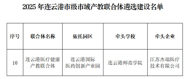 近日,我校“连云港医疗健康产教联合体”成功获批市级立项,成为全市12个市域产教联合体之一。