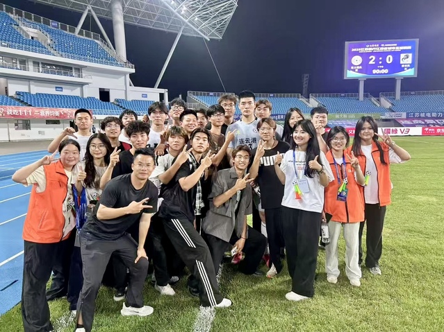 我校40余名大学生志愿者参与“苏超”志愿服务。物资组学生整理发放千余件赛事纪念品;氛围组学生参与现场警戒线拉设、旗帜摆放和氛围营造;引导组学生参与指引2万余名观众有序入场;担架组学生高效完成伤员转运;捡球组学生快、准、稳完成数次球权回收。志愿者学生们用实际行动为赛事的顺利开展筑起了一道道坚实的青春保障线。