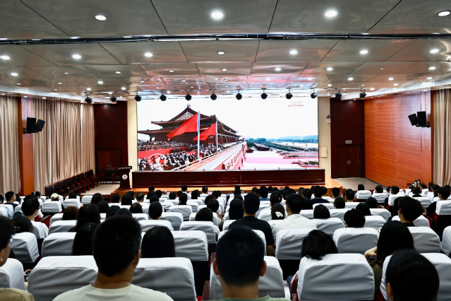 9月3日,纪念中国人民抗日战争暨世界反法西斯战争胜利80周年大会在北京天安门广场隆重举行,中共中央总书记、国家主席、中央军委主席习近平发表重要讲话并检阅受阅部队。我校设置了主会场和多个分会场,组织师生集中收看纪念大会直播,共同铭记历史、缅怀先烈、珍爱和平、开创未来。