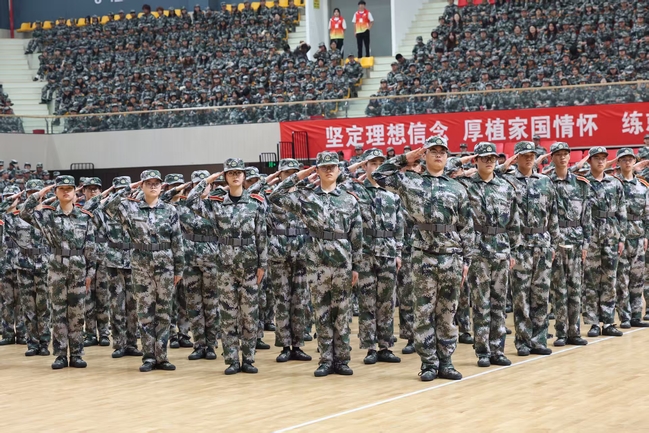 姚荣斌代表学校向同学们提出了三点希望:一是筑牢信仰之基,将“小我”融入“大我”。把个人的理想融入时代,把青春的力量奉献家国,庄敬自强、勤学笃行,练就过硬本领,未来在各自领域深耕不辍,努力成为强国大厦最坚实的路基、民族复兴最澎湃的浪花。二是磨砺刚毅之志,以坚韧铸就品格。将军训淬炼的坚强意志力,真正化为未来学习与生活的行动自觉,在书山学海中忍耐寂寞、潜心钻研,在科学研究中不断探索、求是创新,在社会实践中勇于担当,主动磨砺。三是涵养自律之风,用习惯奠基未来。找准成长坐标,以“站如松”的姿态立身处世,以“行有度”的准则待人接物,通过由外而内、由形到神的作风养成,为自己的人生坚实奠基。